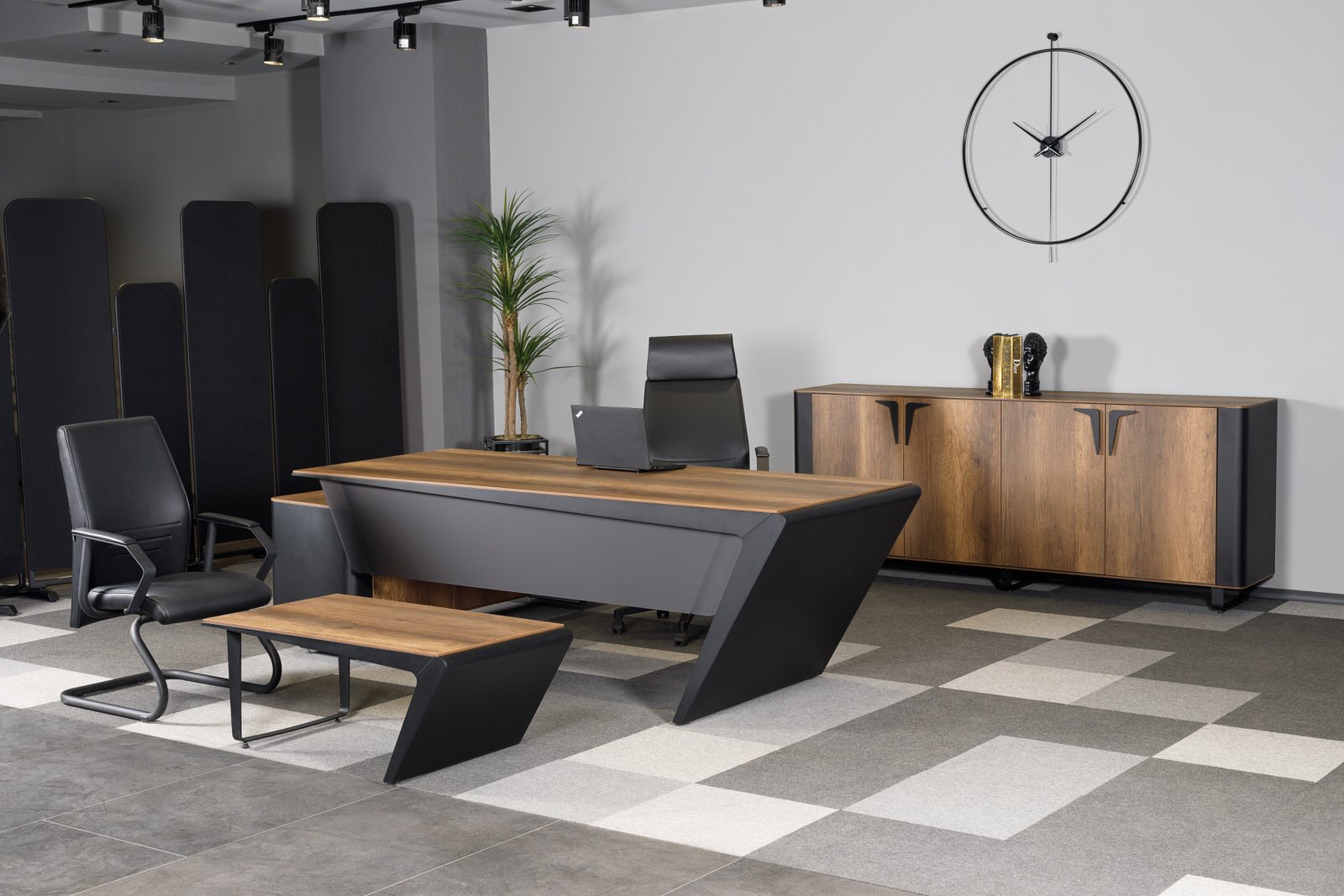 Ares Makam Takımı, makam odalarında güç, prestij ve profesyonelliği aynı çizgide buluşturan özel bir yönetici mobilya serisidir. Keskin tasarım detayları ve dengeli form yapısı sayesinde üst düzey ofisler için etkileyici bir atmosfer oluşturur.