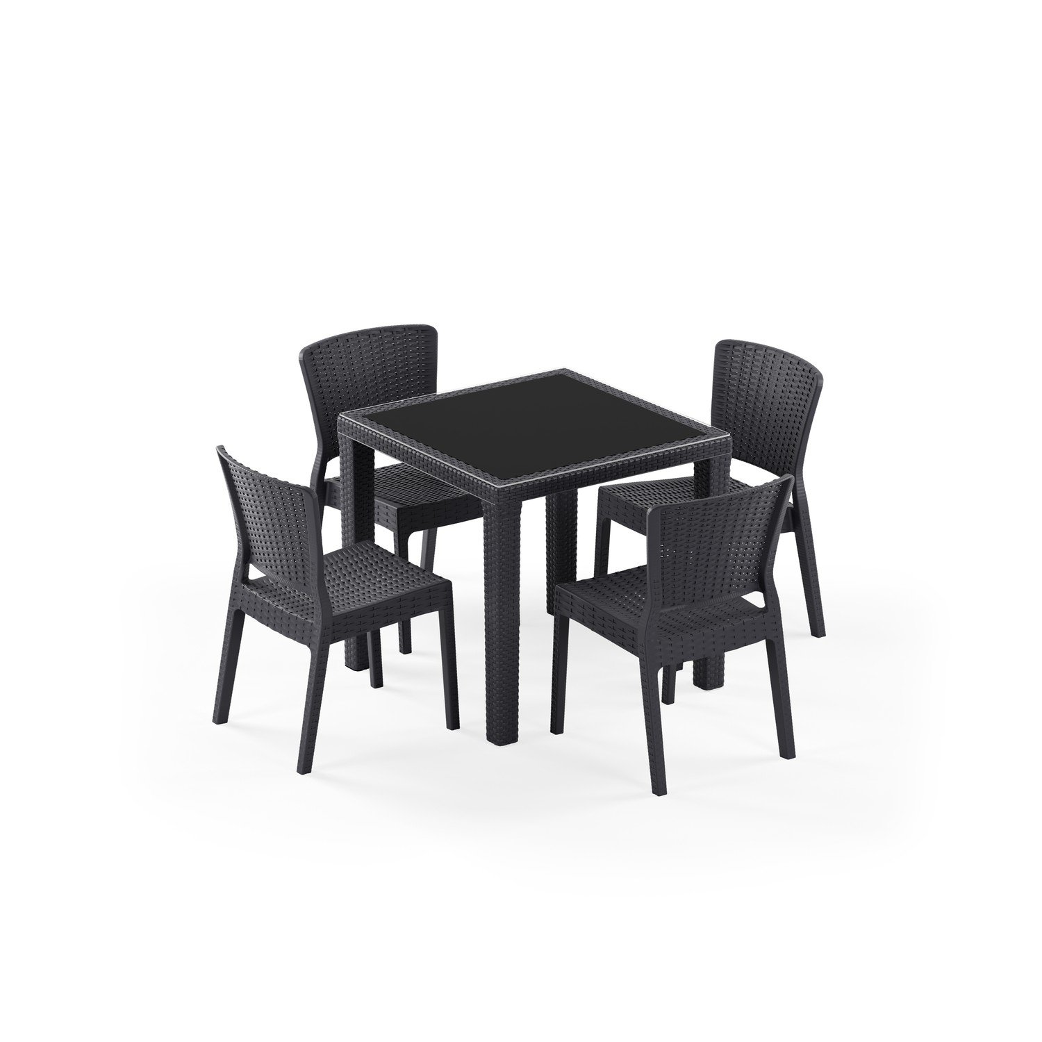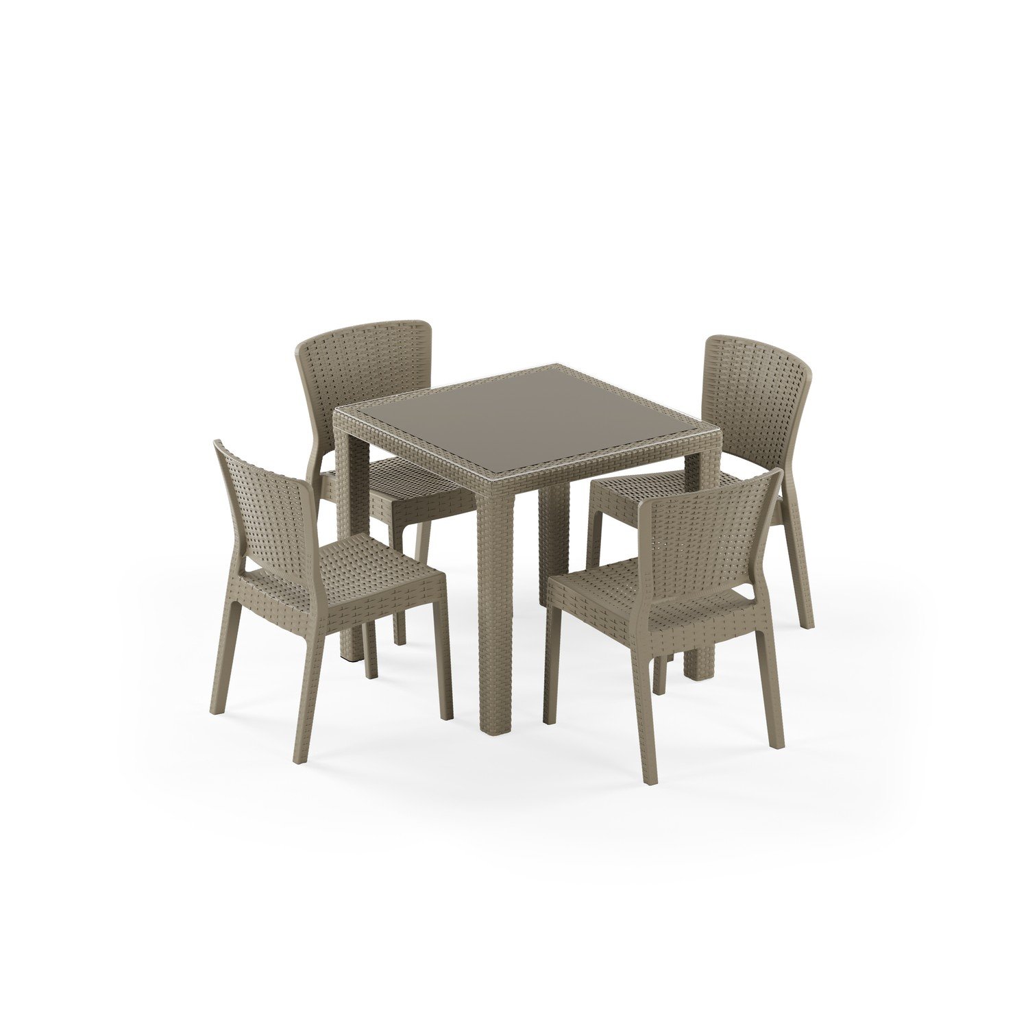 Antares Camlı 80x80 ve Antares Kolçaksız 4 Kişilik Rattan Masa Takımı