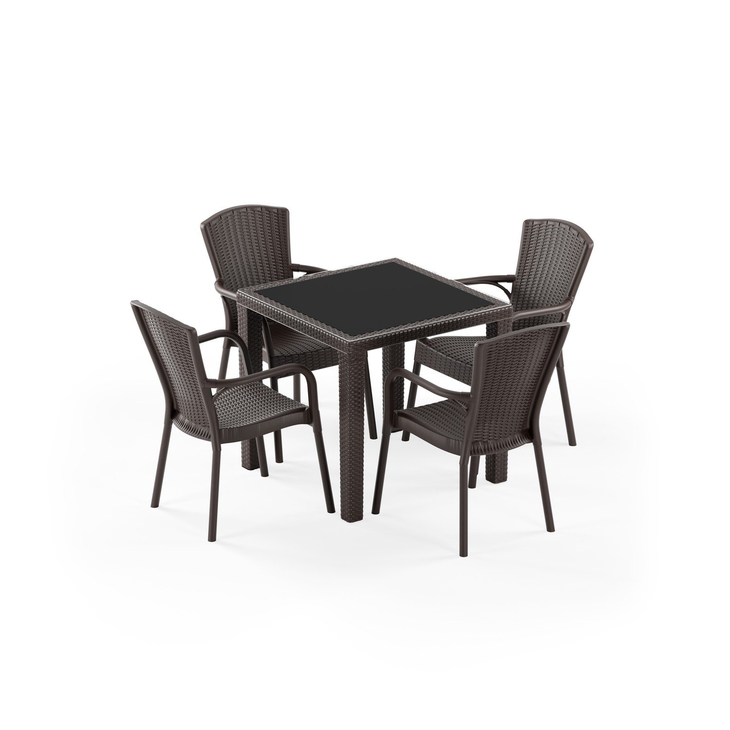 Antares Camlı 80x80 ve Royal 4 Kişilik Rattan Masa Takımı