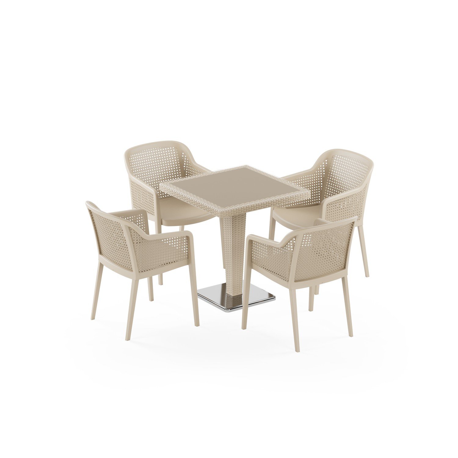 Antares Krom Ayak 70x70 ve Octa 4 Kişilik Rattan Masa Takımı