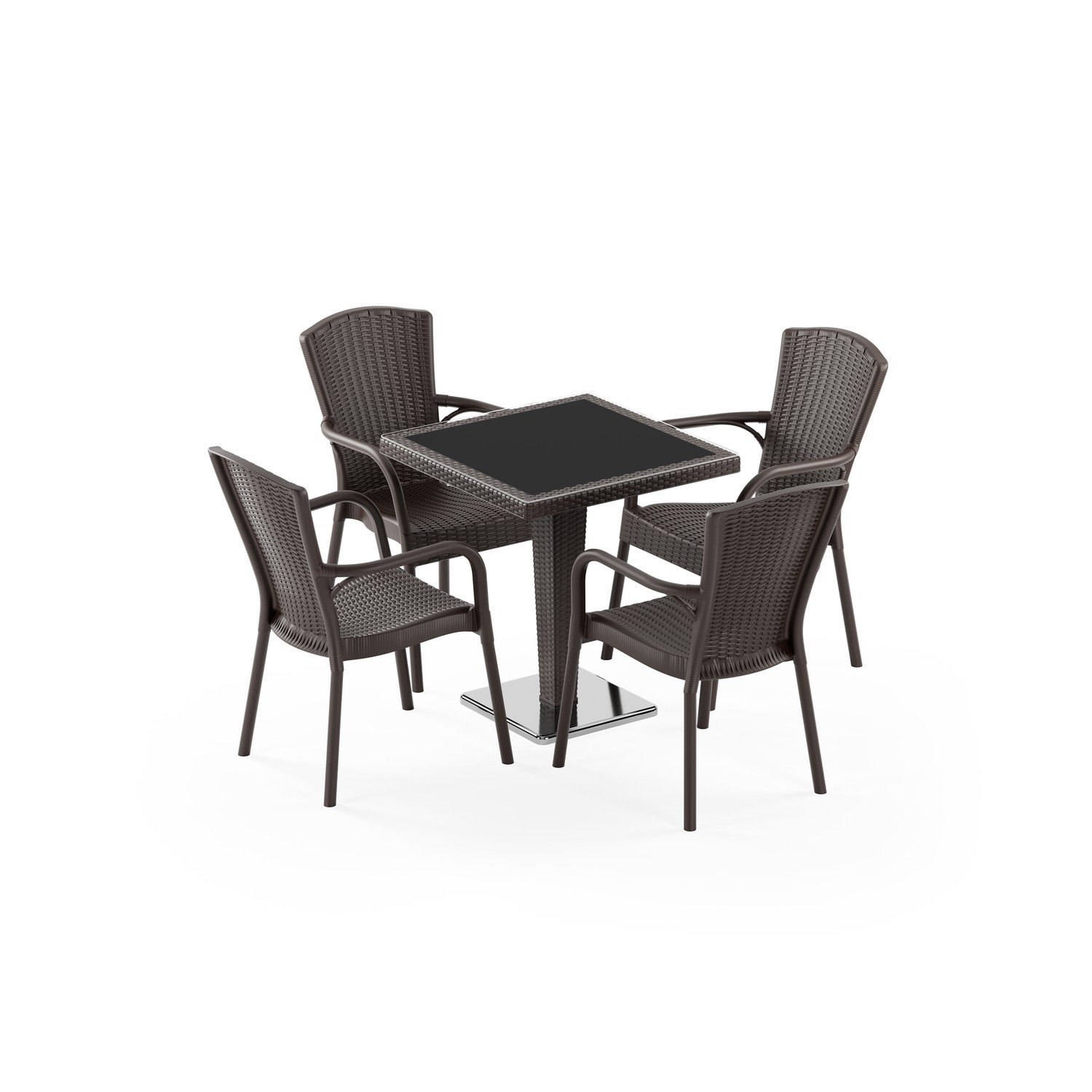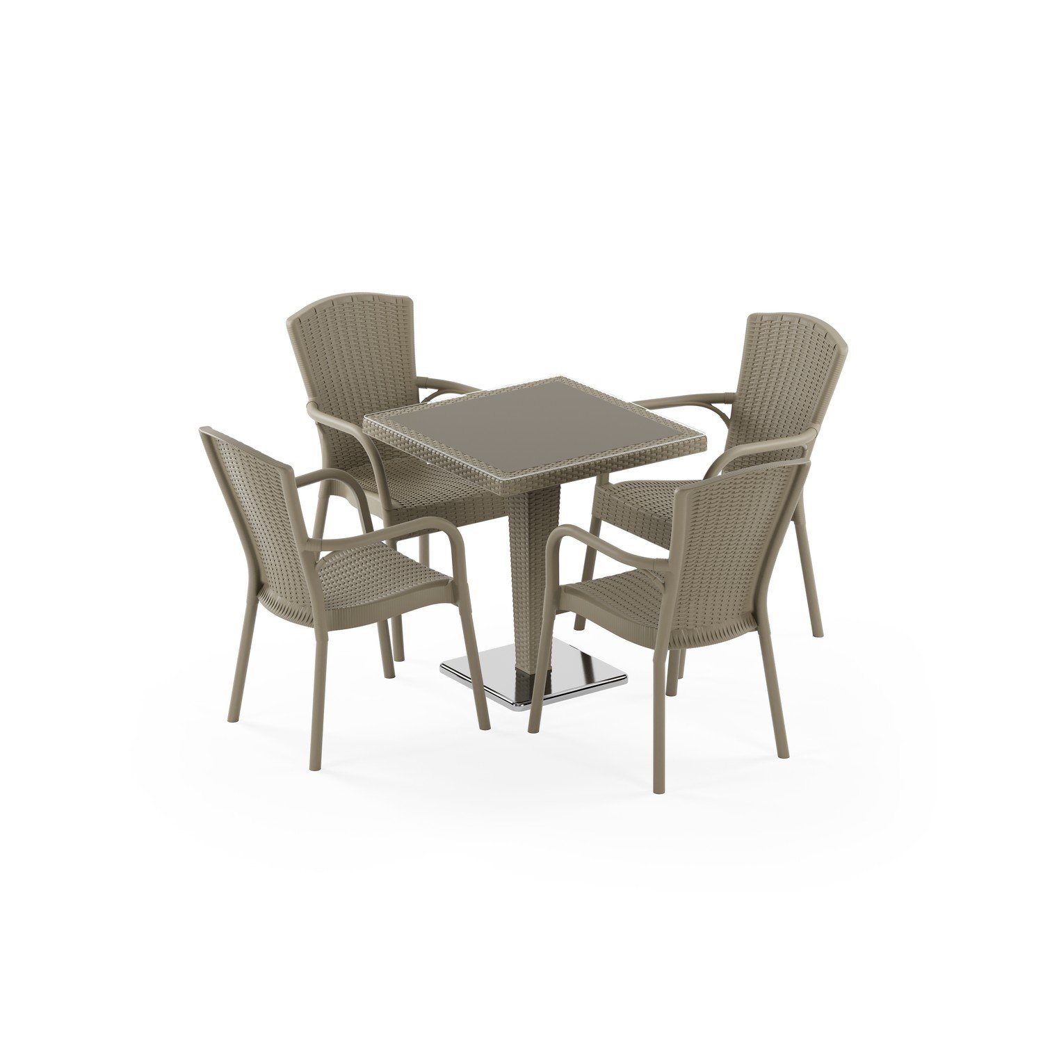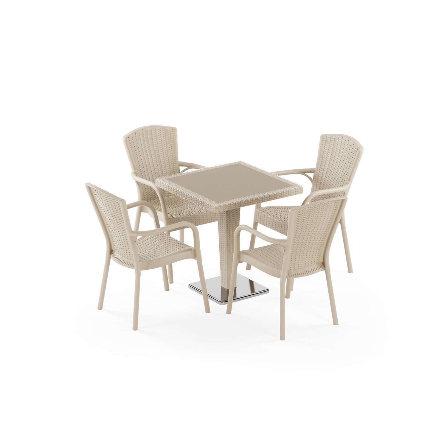 Antares Krom Ayak 70x70 ve Royal 4 Kişilik Rattan Masa Takımı