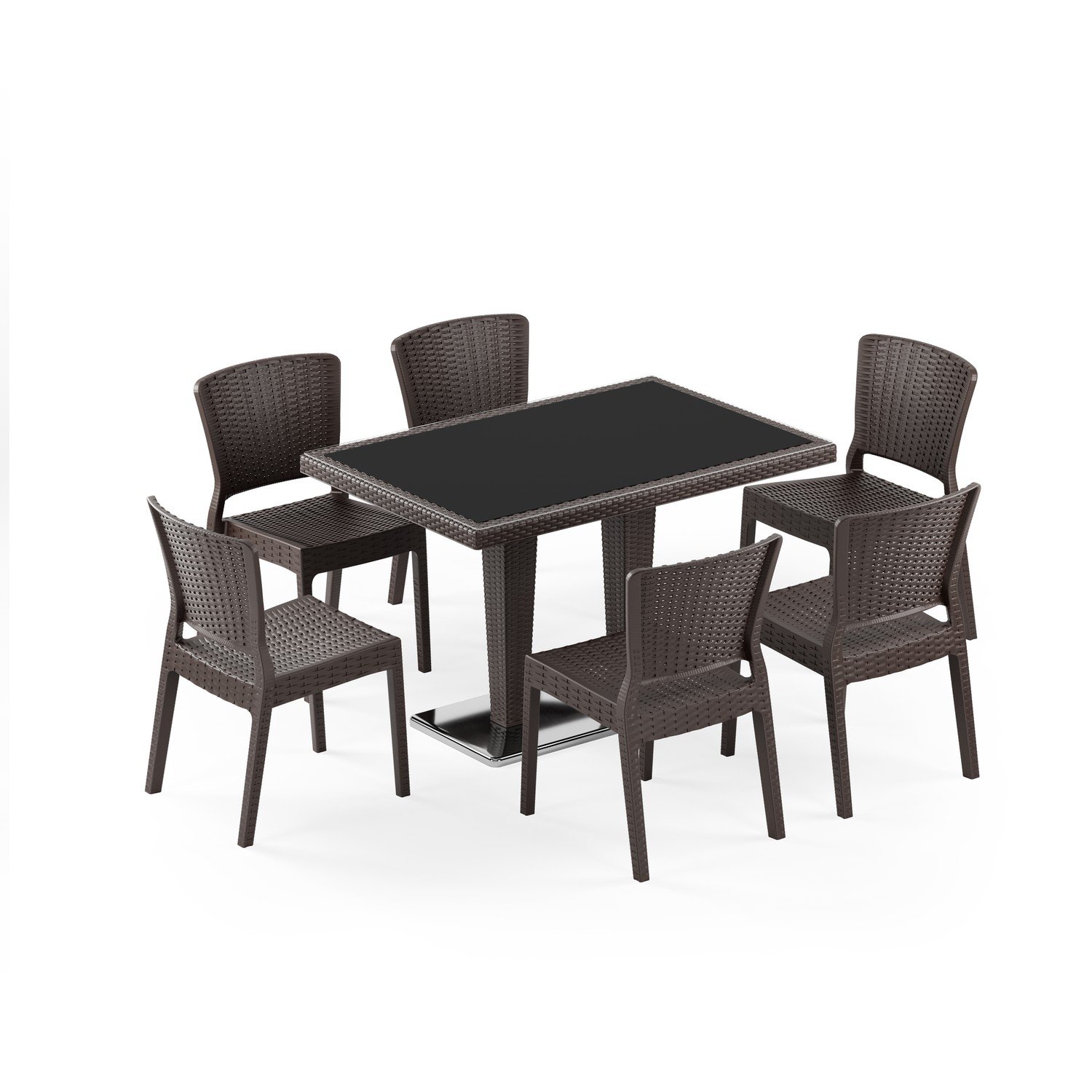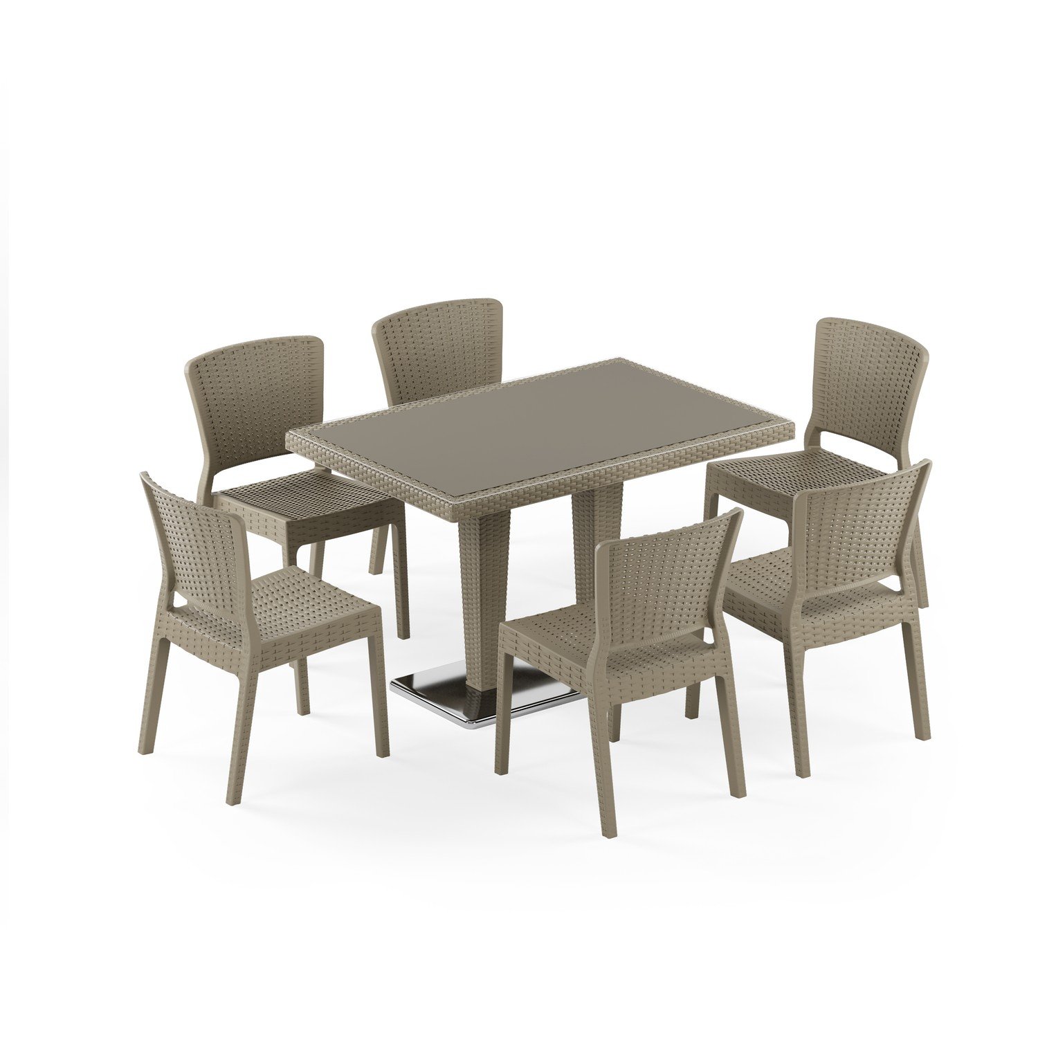 Antares Krom Ayak Camlı 80X120 Antares Sandalye 6 Kişilik Rattan Masa Takımı