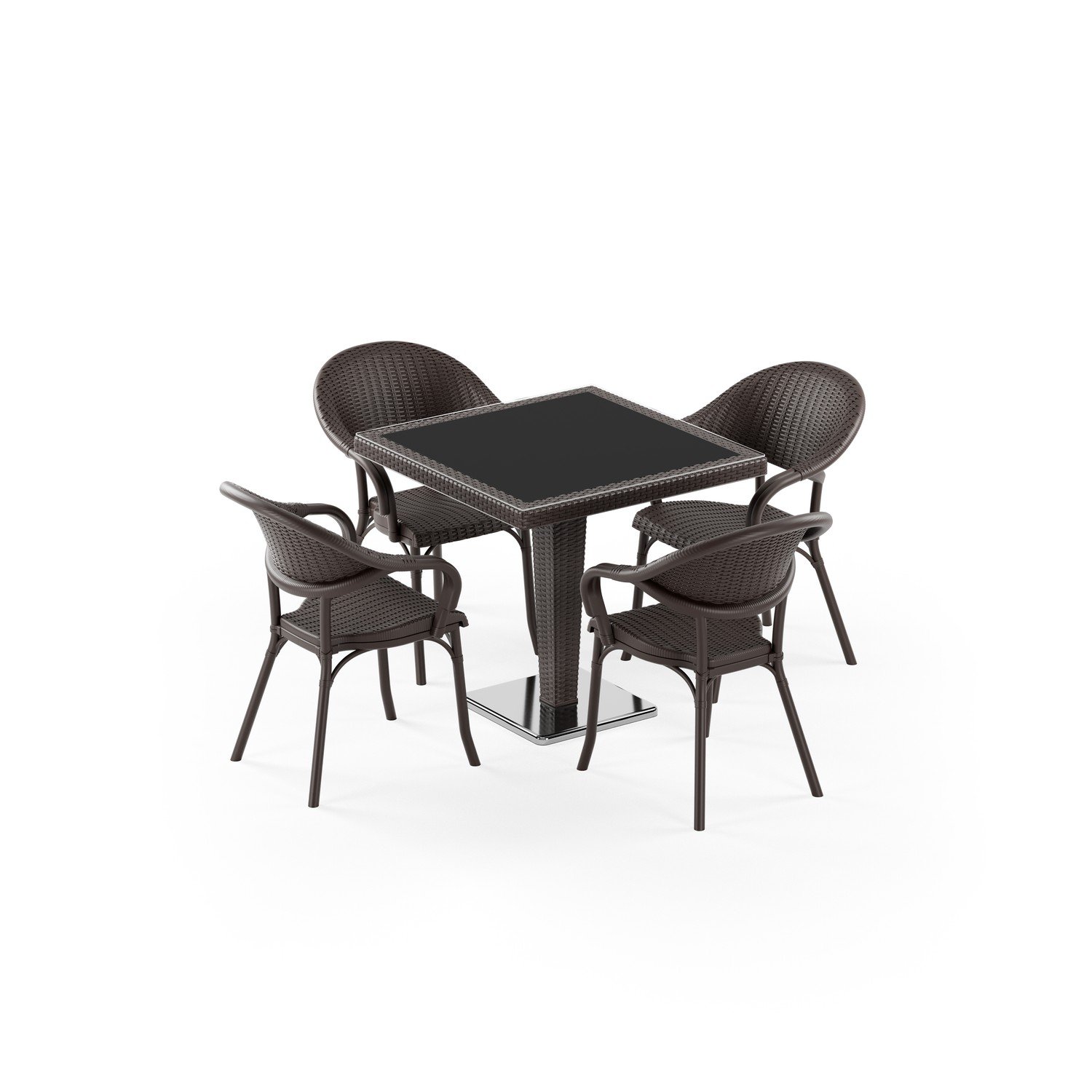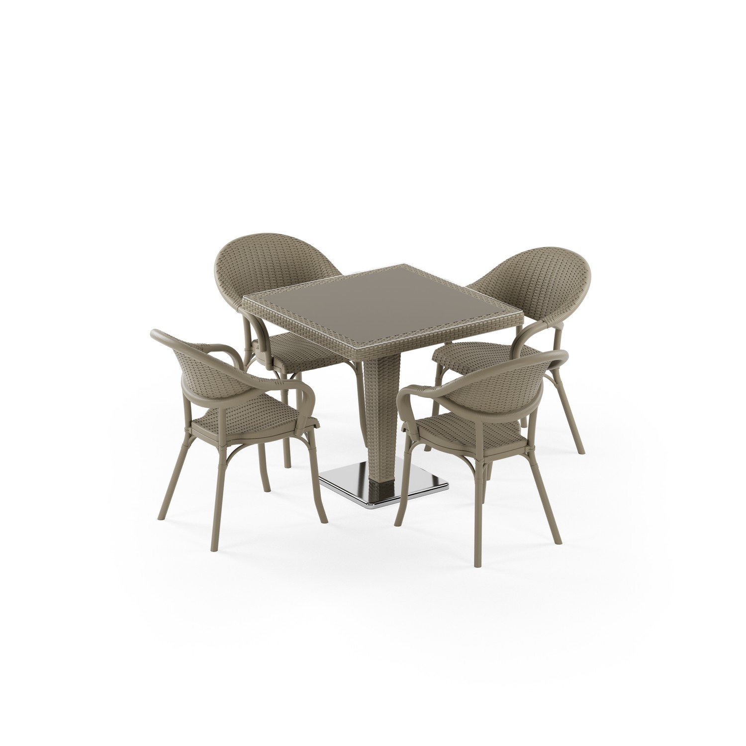 Antares Krom Ayak Camlı 80X80 Flash-R 4 Kişilik Rattan Masa Takımı
