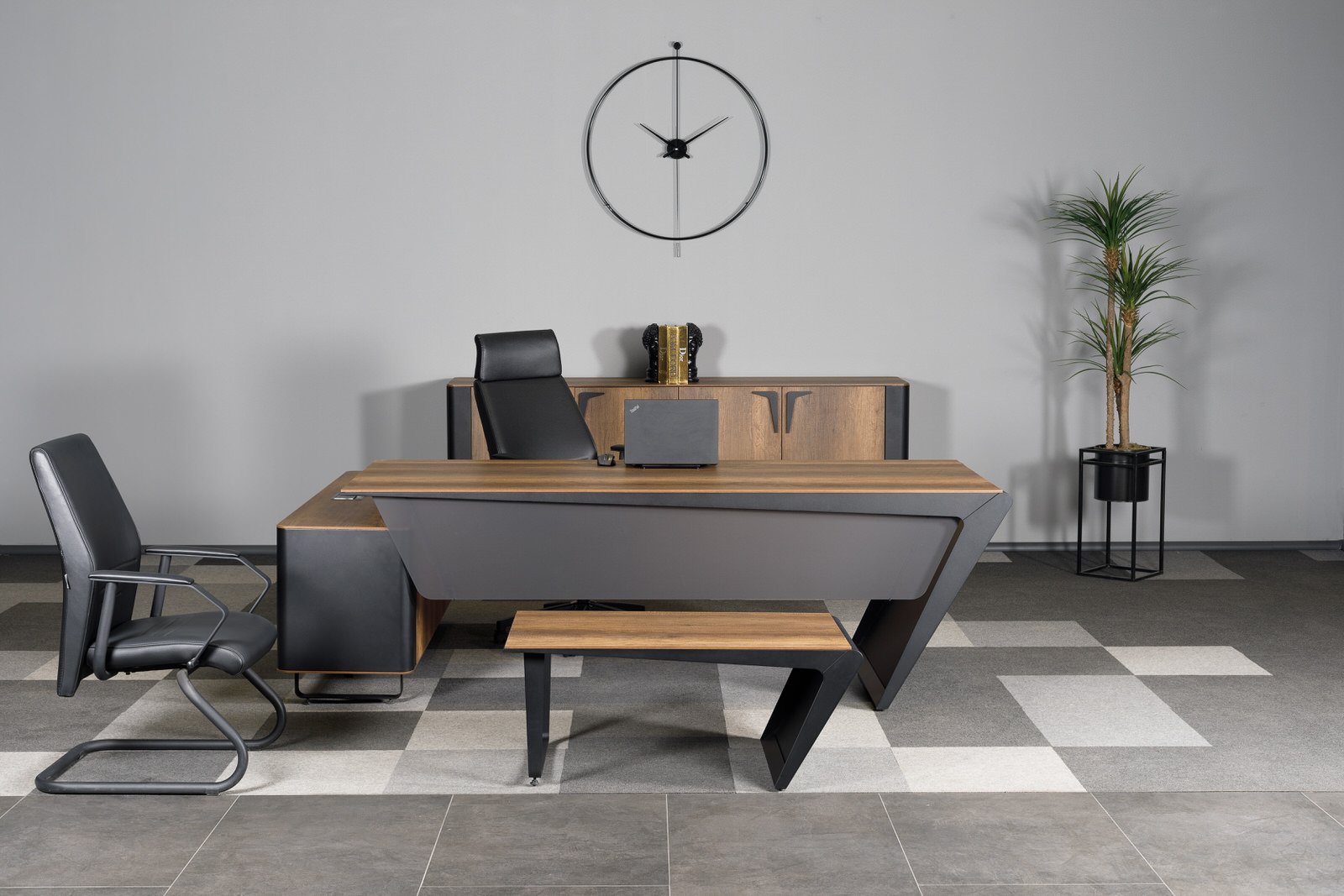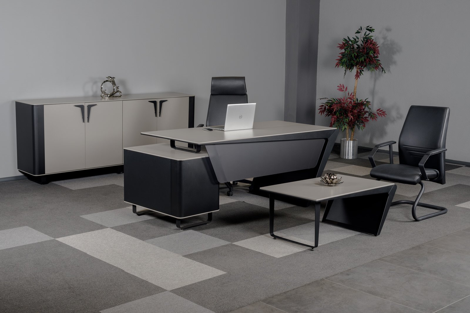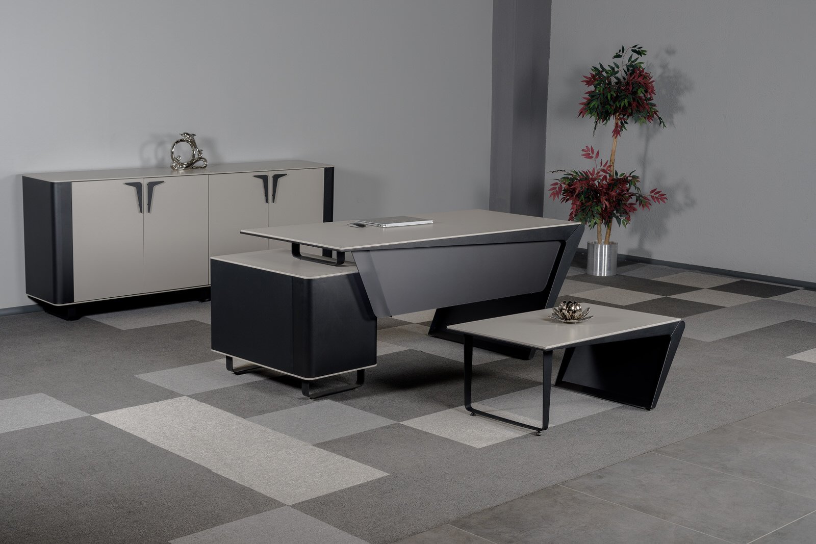 Ares Makam Takımı, makam odalarında güç, prestij ve profesyonelliği aynı çizgide buluşturan özel bir yönetici mobilya serisidir. Keskin tasarım detayları ve dengeli form yapısı sayesinde üst düzey ofisler için etkileyici bir atmosfer oluşturur.