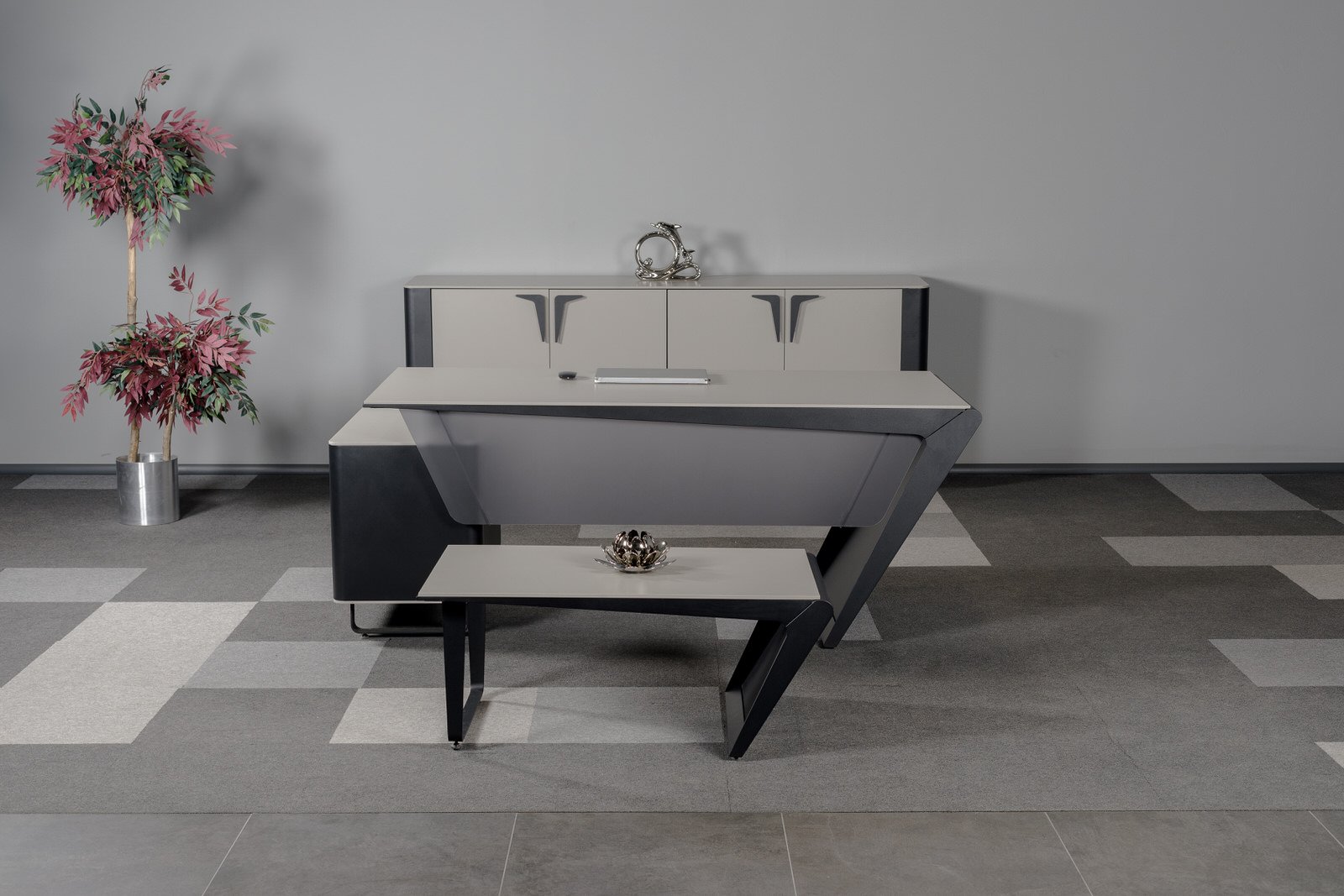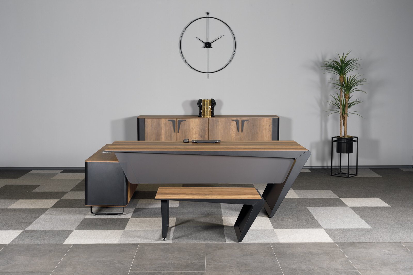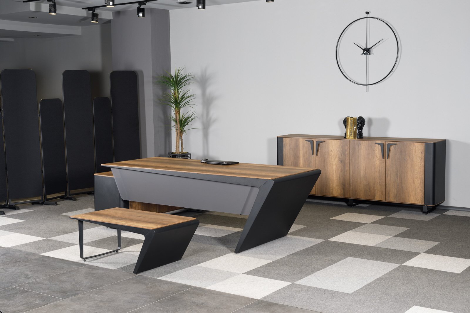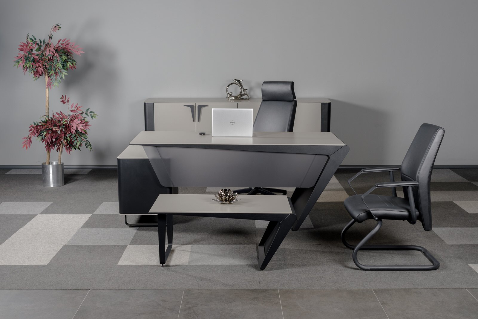 Ares Makam Takımı, makam odalarında güç, prestij ve profesyonelliği aynı çizgide buluşturan özel bir yönetici mobilya serisidir. Keskin tasarım detayları ve dengeli form yapısı sayesinde üst düzey ofisler için etkileyici bir atmosfer oluşturur.