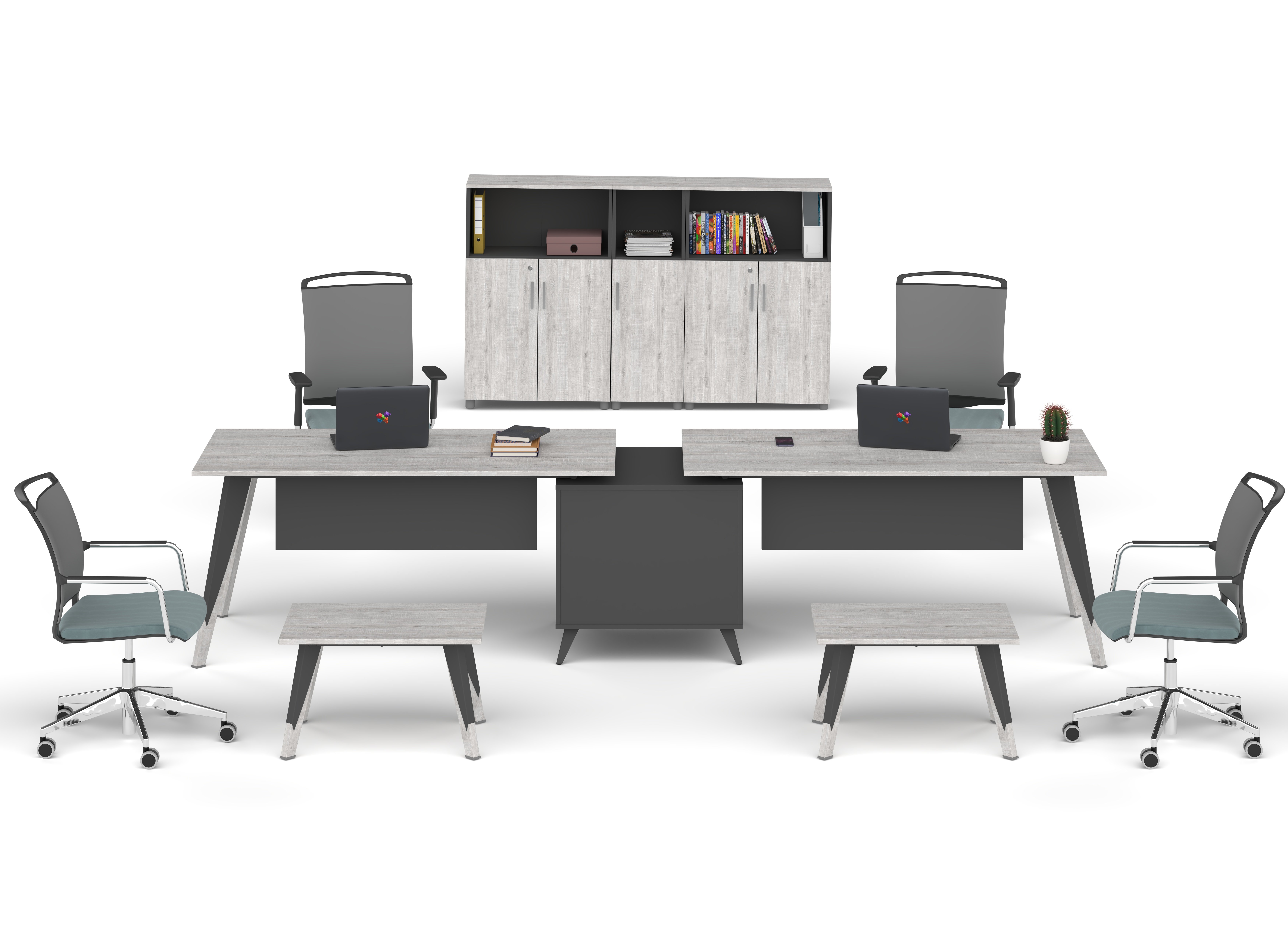 Trend İş İstasyonları, güncel ofis tasarım anlayışını modüler ve fonksiyonel çözümlerle birleştirerek modern çalışma alanları oluşturur. Açık ofis düzenlerine uyum sağlayan yapısı sayesinde ekip çalışmasını desteklerken düzenli, ferah ve profesyonel bir ortam sunar.